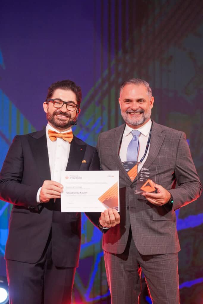 Fábio Correa Xavier recebe troféu de empreendedorismo público no Prêmio J.Ex de Inovação por destaque e impacto no setor.